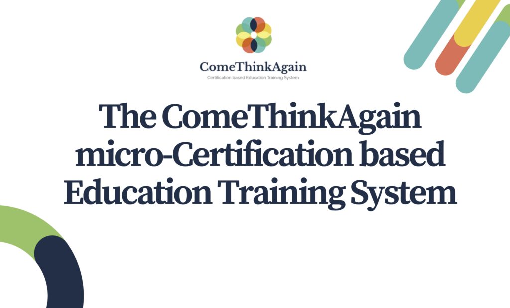 The ComeThinkAgain micro-Certification based Education Training System (CETS) offers an innovative, modular approach to professional learning. Built for teachers and trainers, it allows users to explore micro-courses that can be completed online, remotely, or through in-person sessions, adapting to different learning styles and classroom realities.
